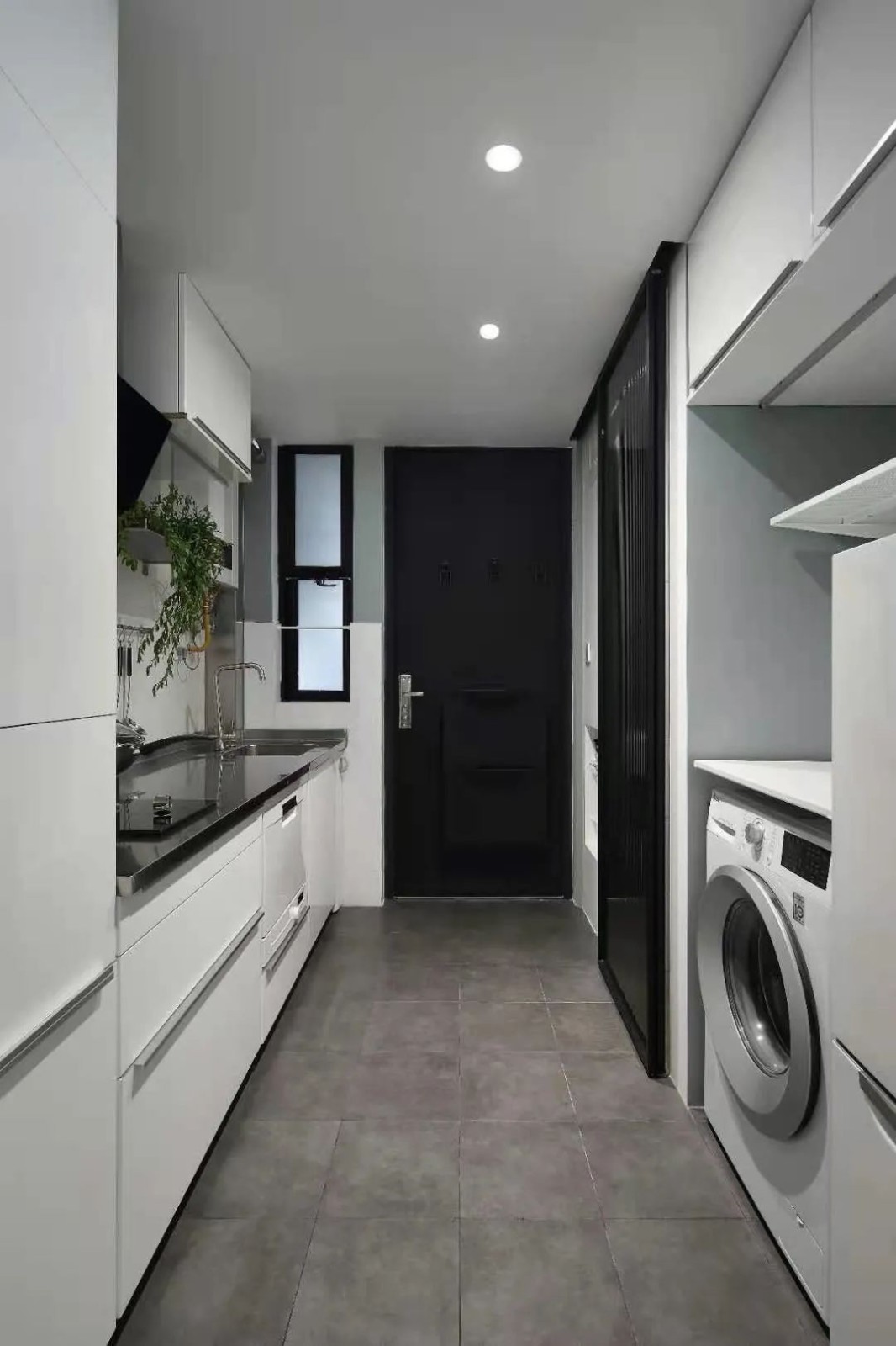 原本尷尬的過道空間一部分作為淋浴區(qū),一部分讓渡出來,作為洗衣區(qū)及廚房功能延伸區(qū),大大提高了廚衛(wèi)區(qū)域的空間利用率。