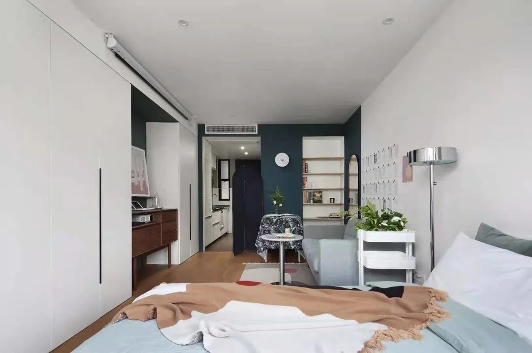 基于屋主一個(gè)人居住,大大的臥室區(qū)域如今融合了臥房、客廳、餐廳、書房功能。