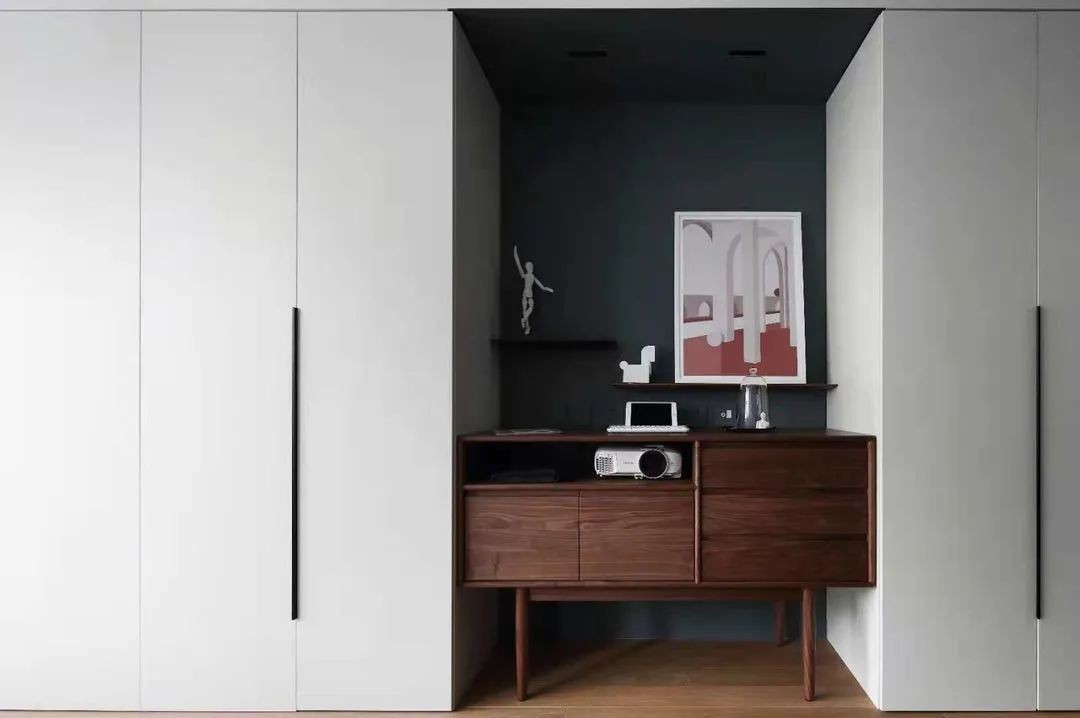 斗柜上安裝了投影幕布,實(shí)現(xiàn)屋主想要的影音功能。