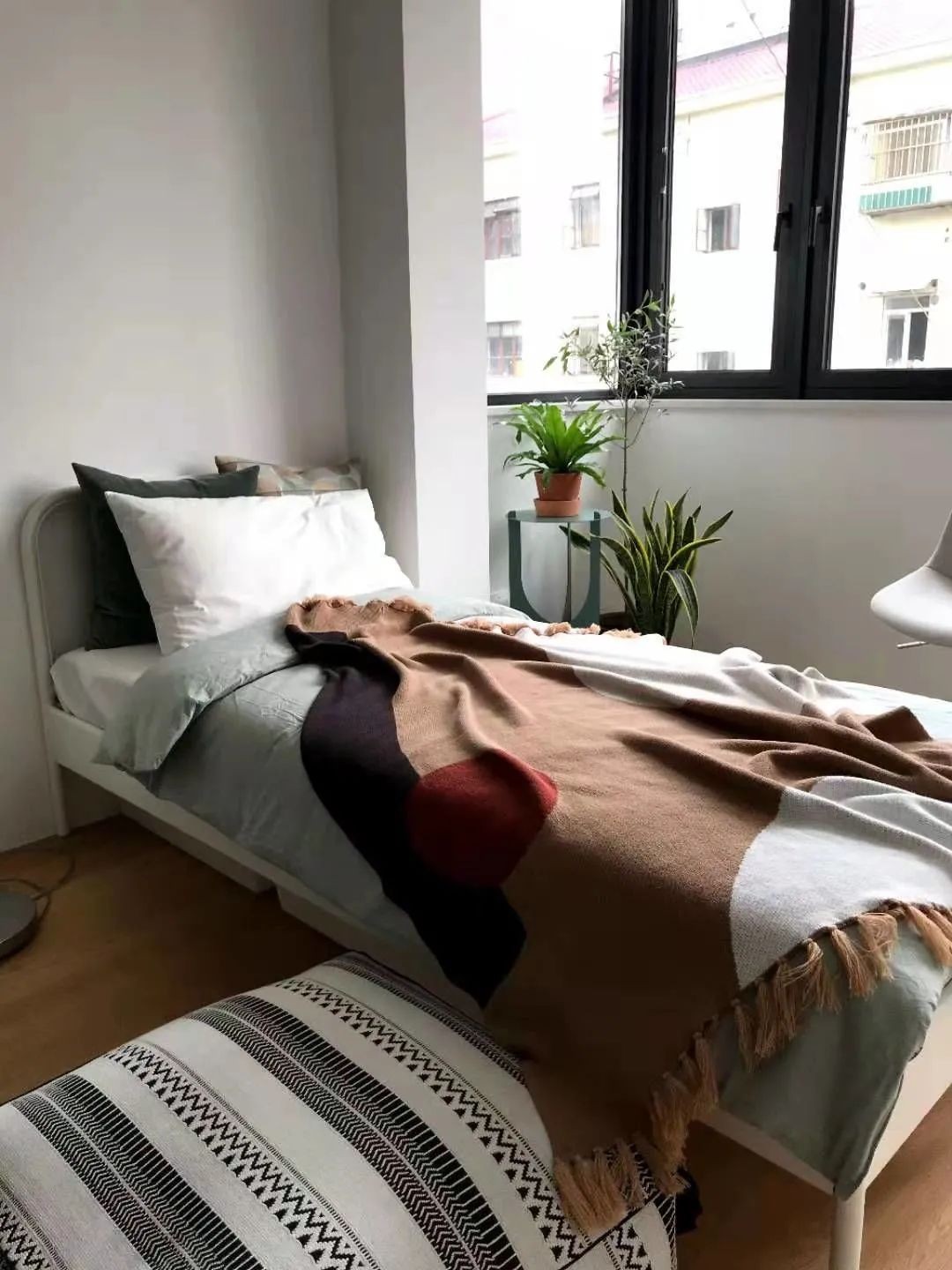 比如本案中如果想要放下一張標(biāo)準(zhǔn)的雙人床,那勢(shì)必會(huì)壓縮客餐廳空間,屋主在考量之后果斷選擇了90公分的單人床。